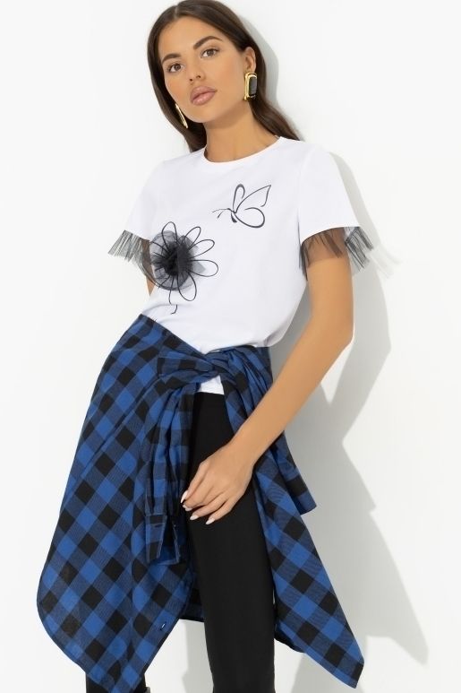 Футболка белая с декором из сетки