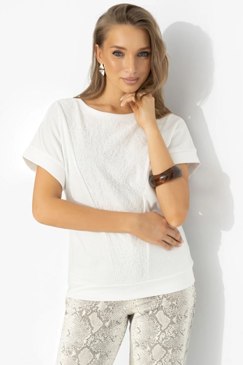 Футболка комбинированная молочного цвета