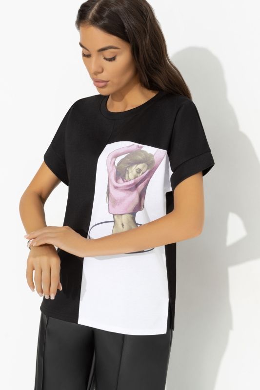 Футболка трикотажная чёрного цвета с принтом