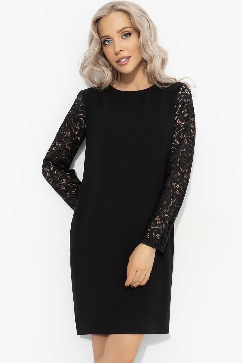 Платье чёрное трикотажное с рукавами из кружева Составляющие успеха, класс