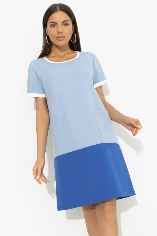 Платье льняное голубое с карманами