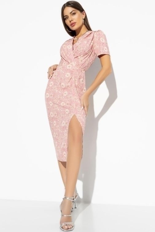 Платье розовое на запах с разрезом
