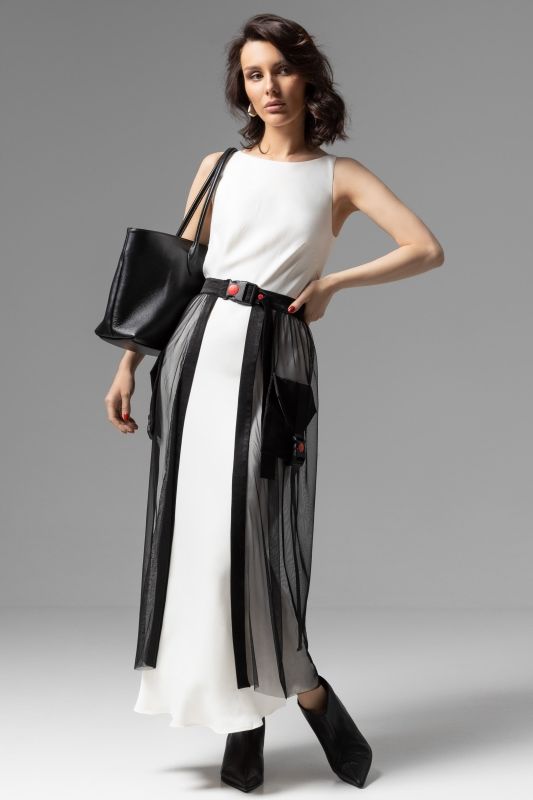 Длинное белое платье без рукавов
