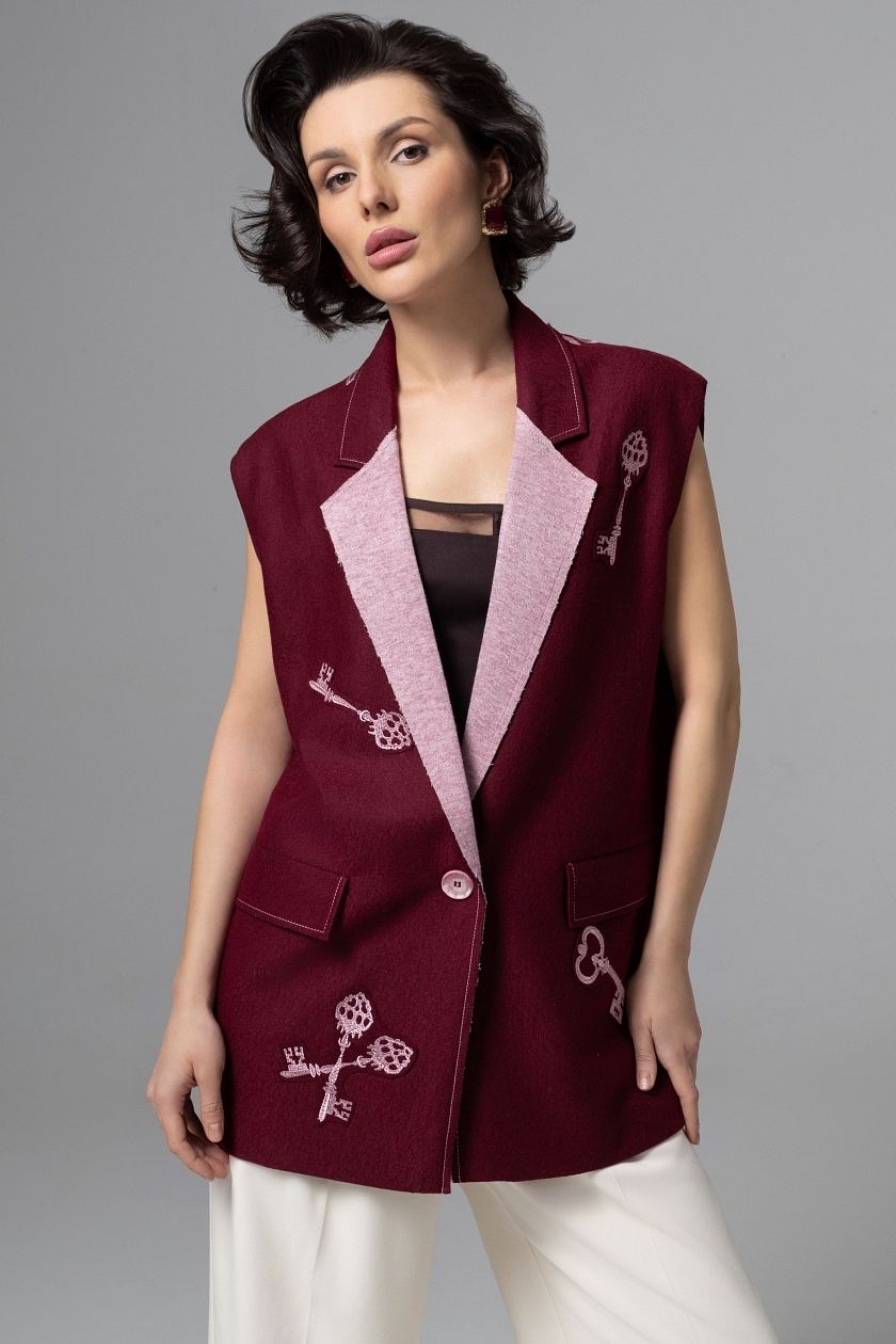 Жилет бордовый с акцентной вышивкой