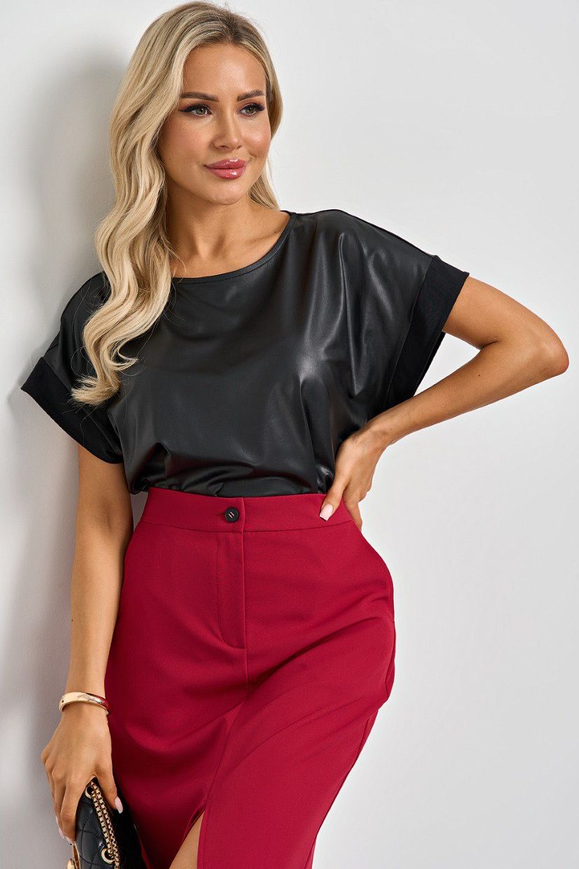 Блузка чёрная из искусственной кожи