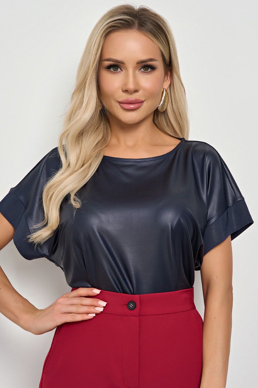 Блузка тёмно-синяя из искусственной кожи