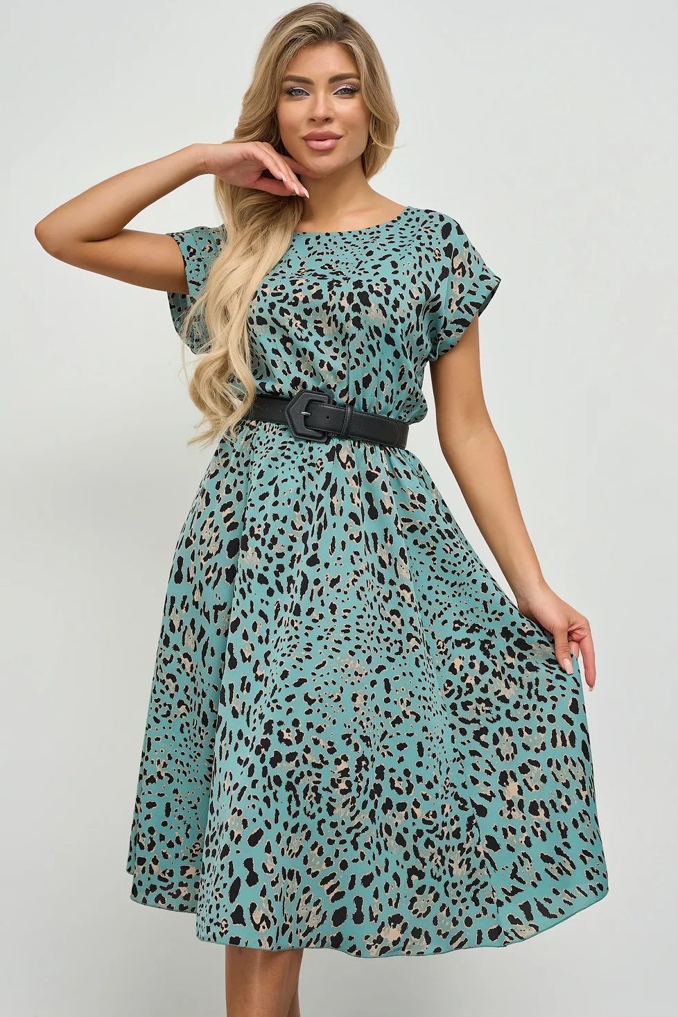 Платье миди мятного цвета с принтом