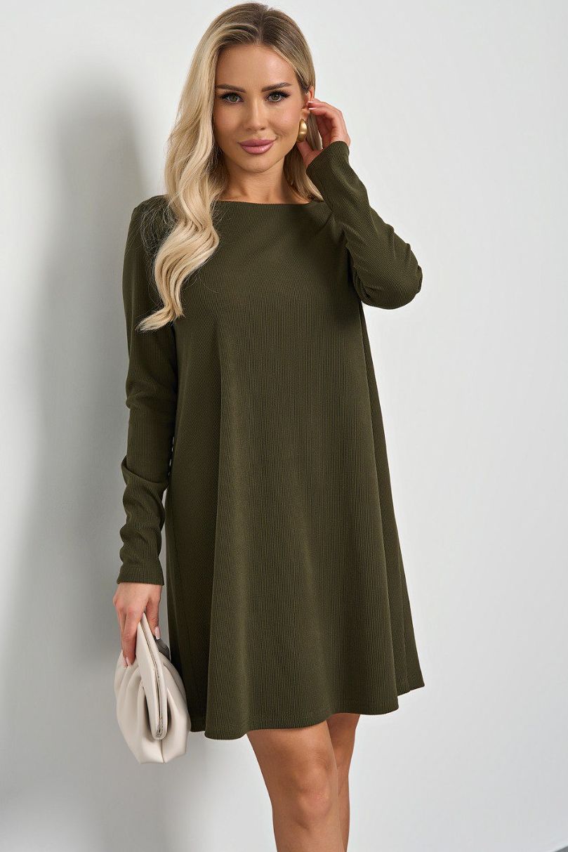 Платье свободное трикотажное цвета хаки от производителя Jetty. Круглый вырез горловины. Длинные втачные рукава. Прекрасно дополнит Ваш гардероб для любого мероприятия.