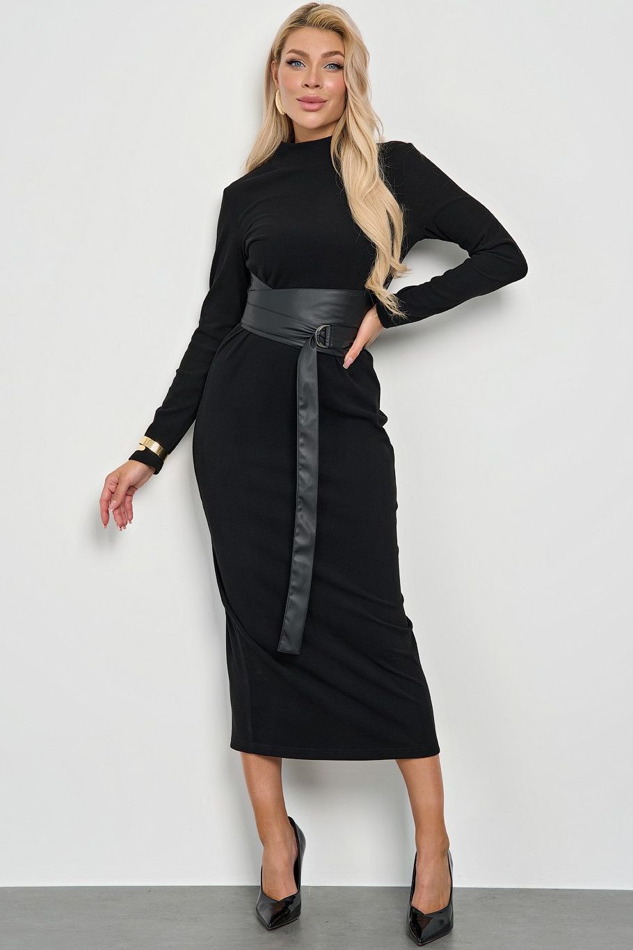 Платье трикотажное чёрное длинное