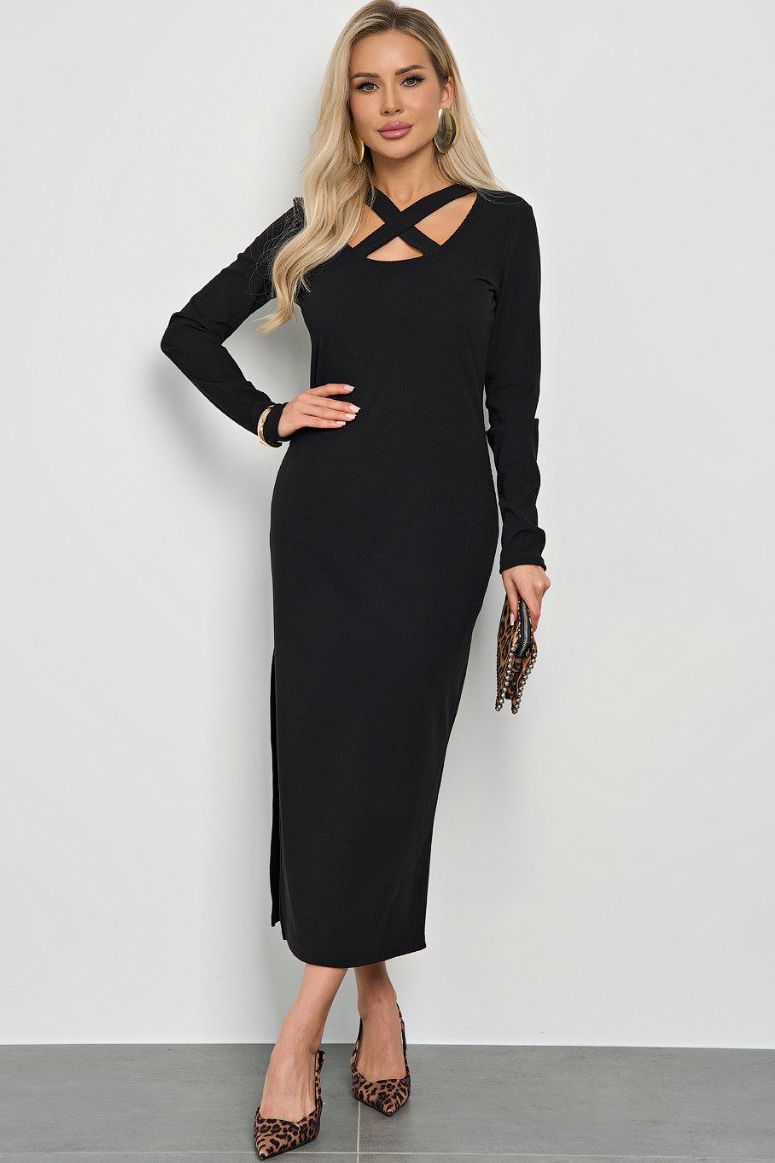 Платье трикотажное чёрное с разрезом