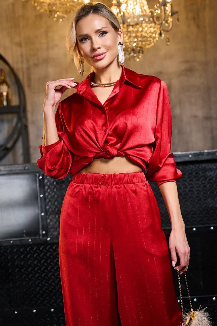 Рубашка красная атласная в полоску