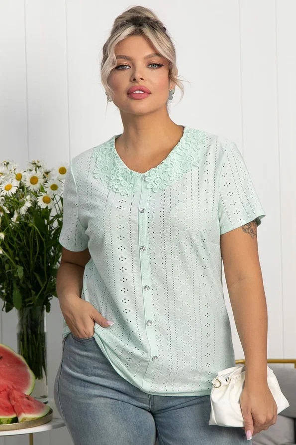 Блузка лёгкая изумрудного цвета с графическим принтом