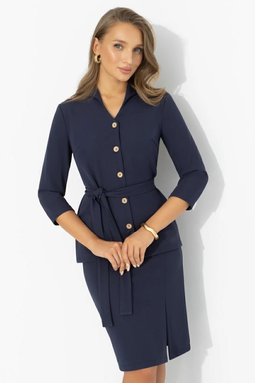 Костюм синий с юбкой трикотажный