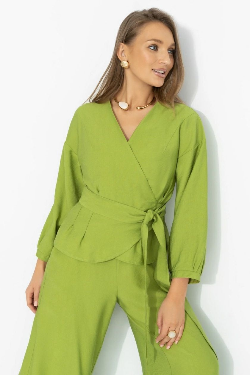 Блузка лаймового цвета из вискозы от компании Charutti. Лёгкая вискоза струится, нейлон добавляет формы, запах подчёркивает талию, объёмные рукава создают мягкое движение. Ты – экзотическая дива, а мир вокруг – твой яркий фильтр!