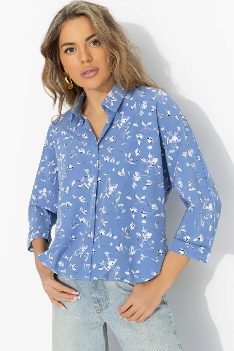 Блузка голубая на кулиске
