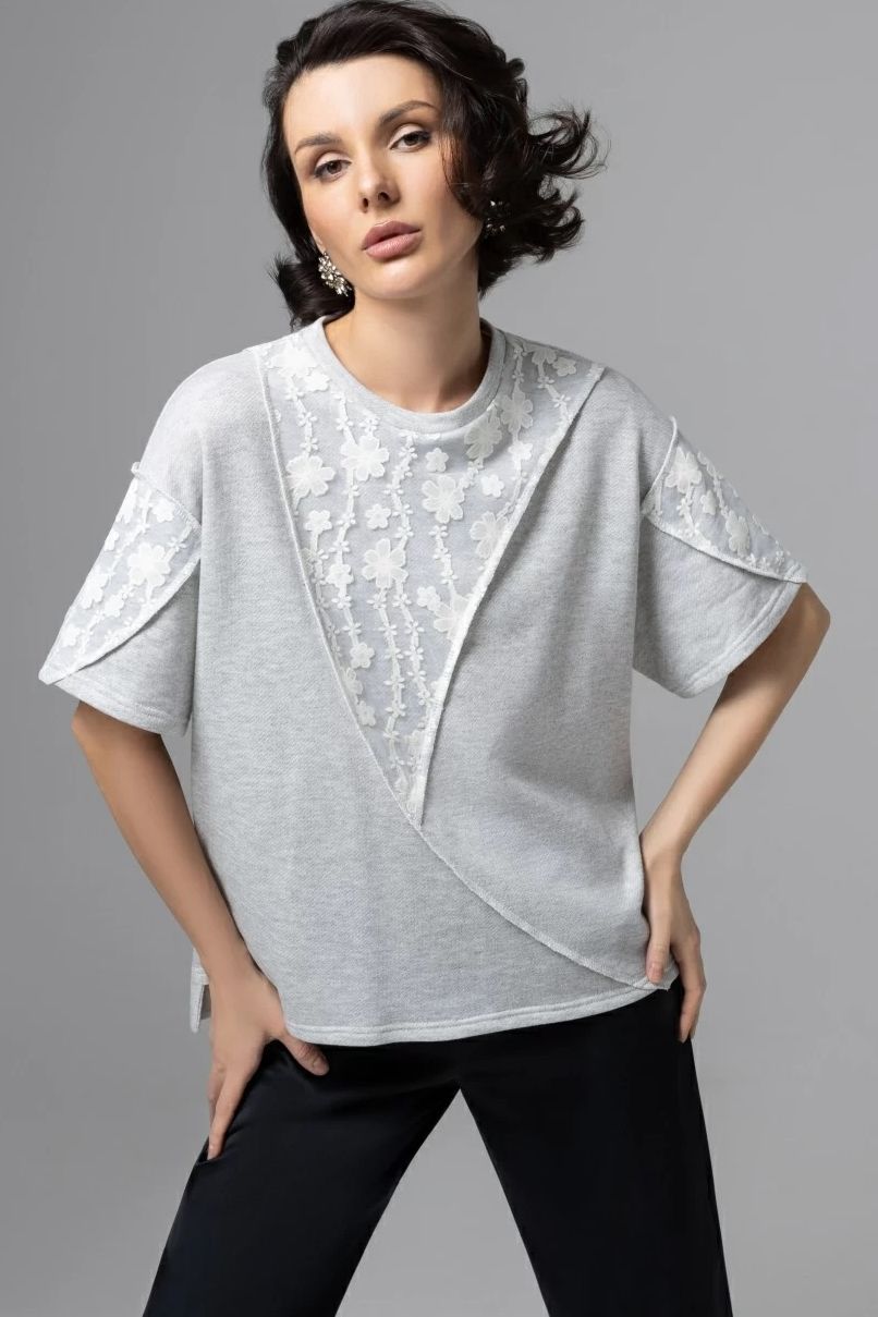 Футболка серая с кружевным декором