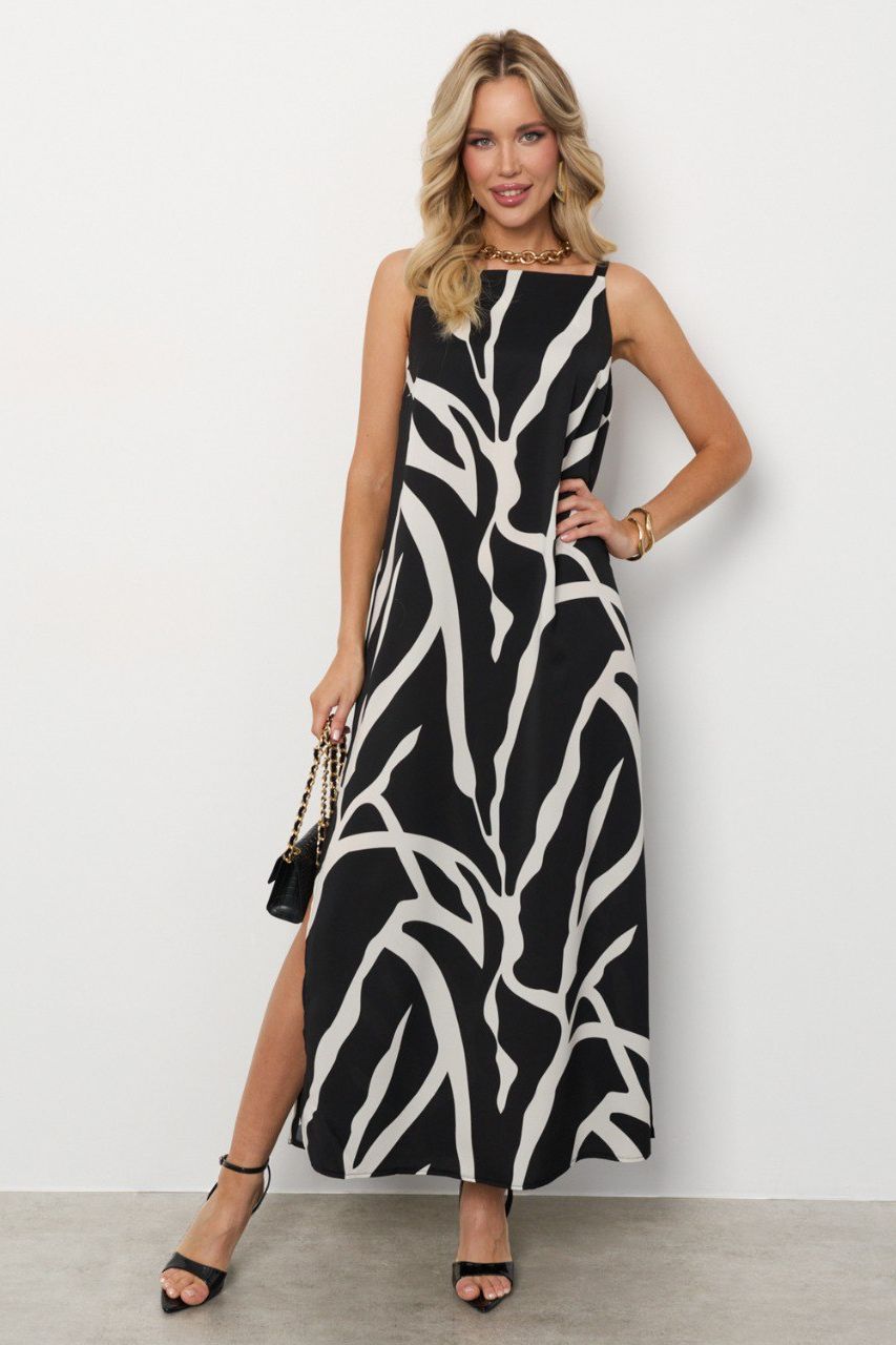Сарафан длинный чёрный с разрезами от компании Jetty. Модель свободного силуэта, выполнена из плательного полотна. Квадратный вырез горловины. Без рукавов, на не регулируемых лямках. Без застёжки. Идеальный выбор для Вашего летнего гардероба.
