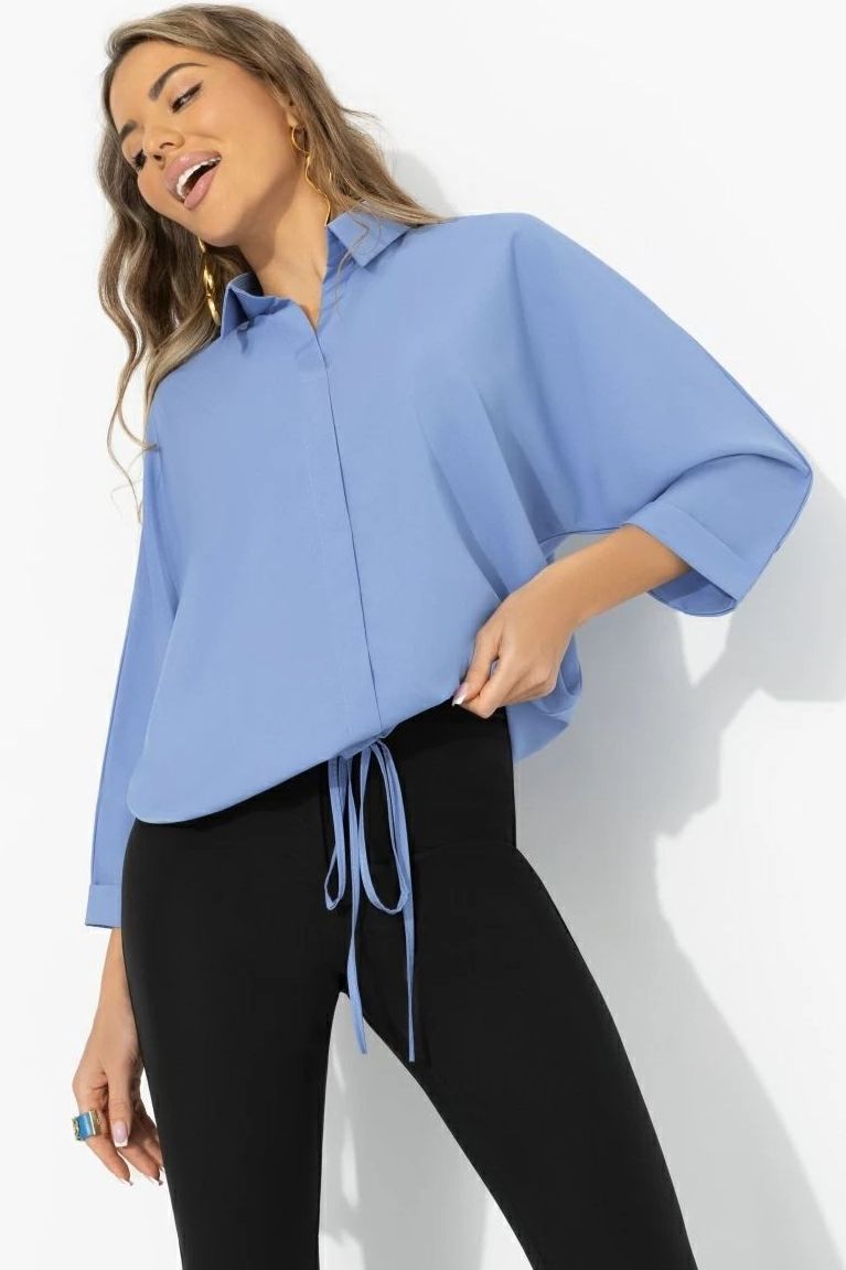 Блузка голубая на кулиске