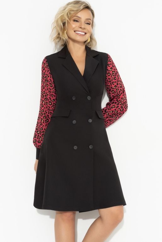 Платье чёрное на запах с рукавами из шифона с леопардовым принтом