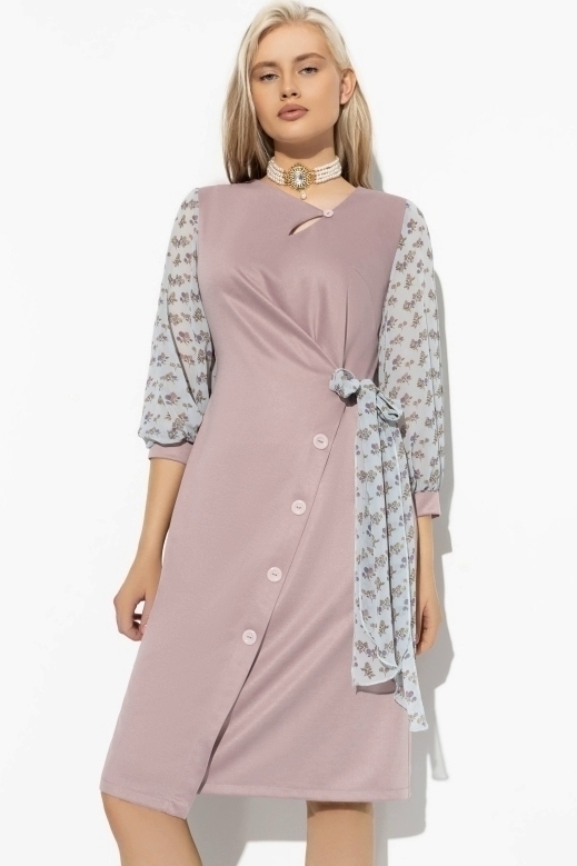 Платье розовое с рукавами из шифона