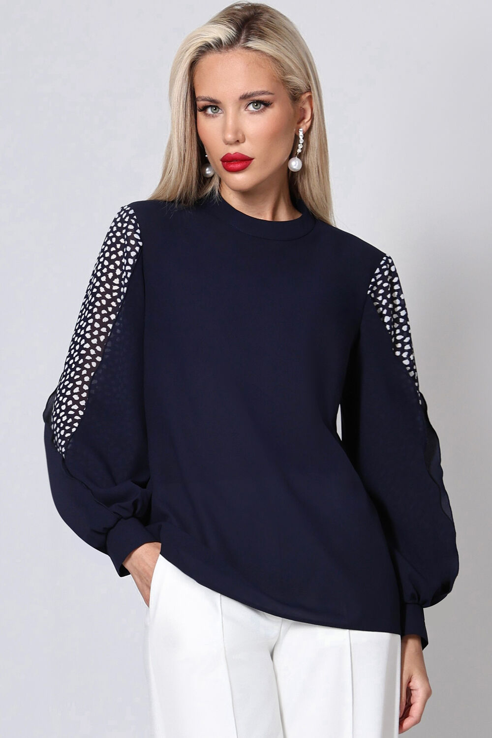 Блузка тёмно-синяя с длинными рукавами Мари, найт