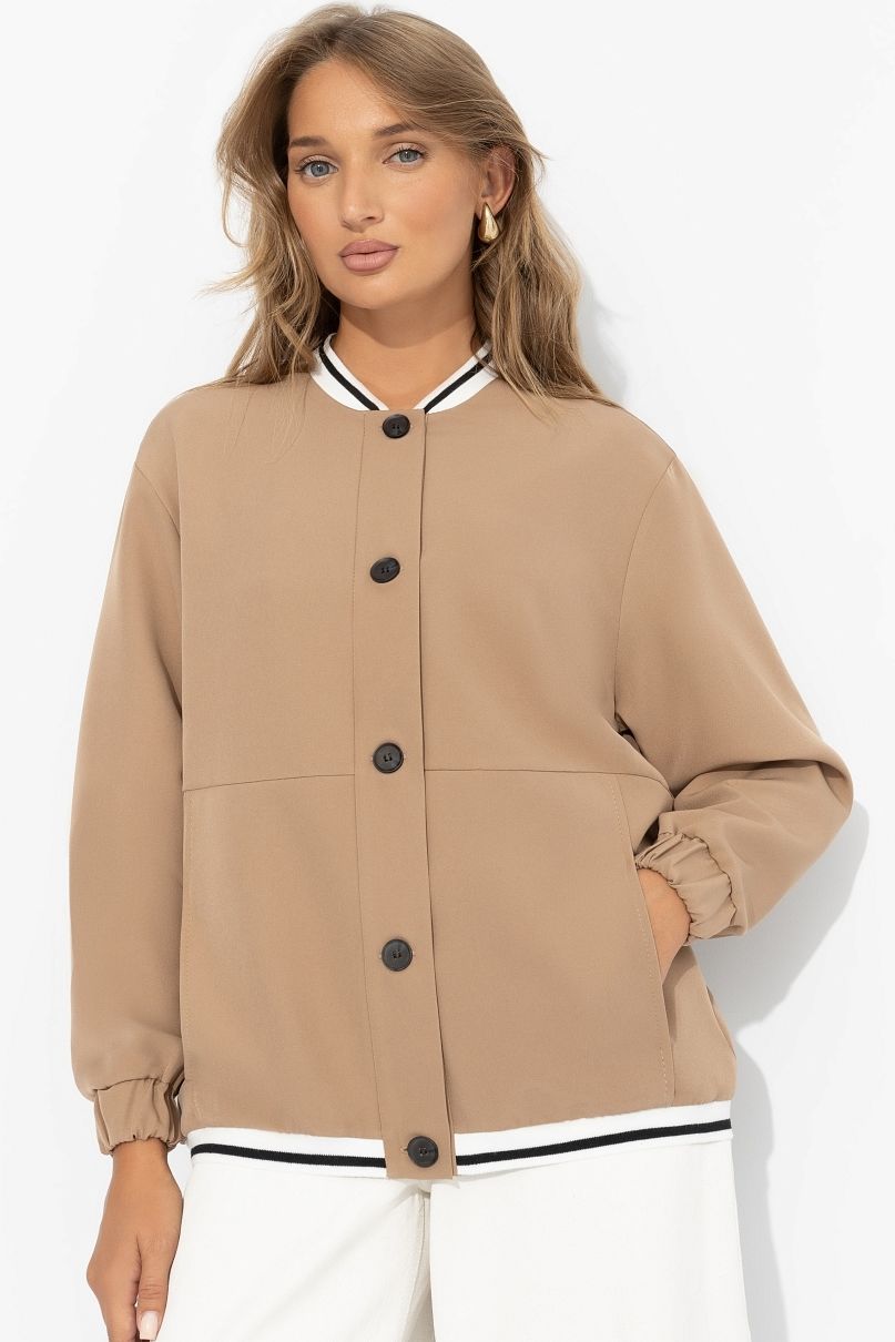 Бомбер бежевый на пуговицах