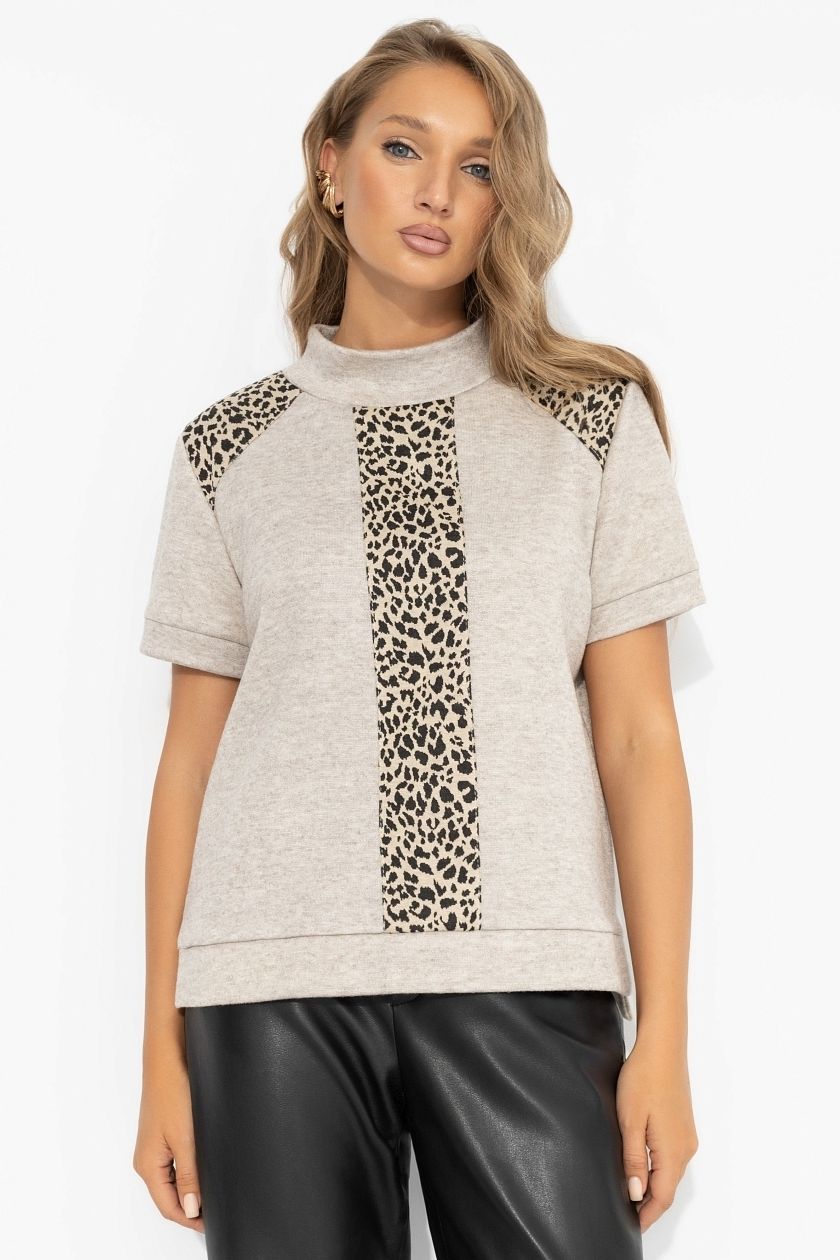 Белая блузка отделочной лентой по планке и воротнику контрастного цвета