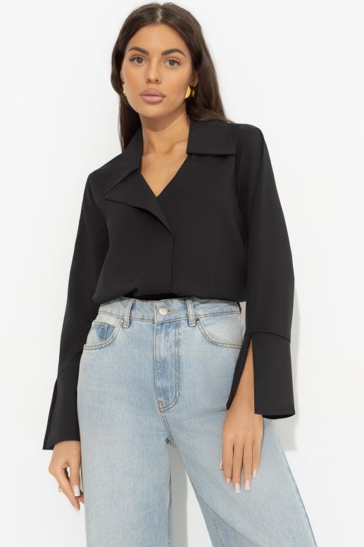 Блуза чёрная с разрезами на рукавах