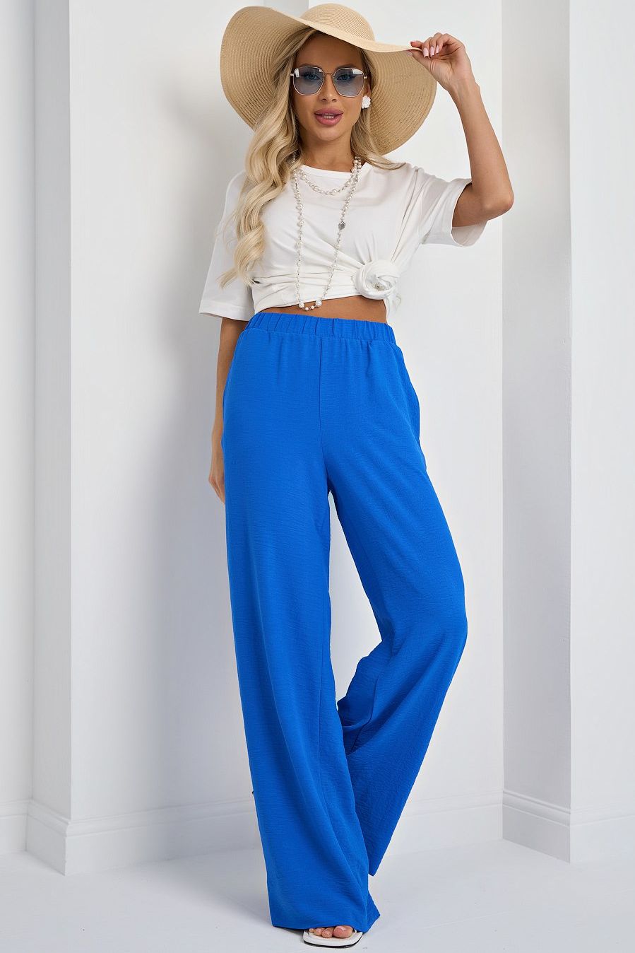 Брюки широкие синие с карманами