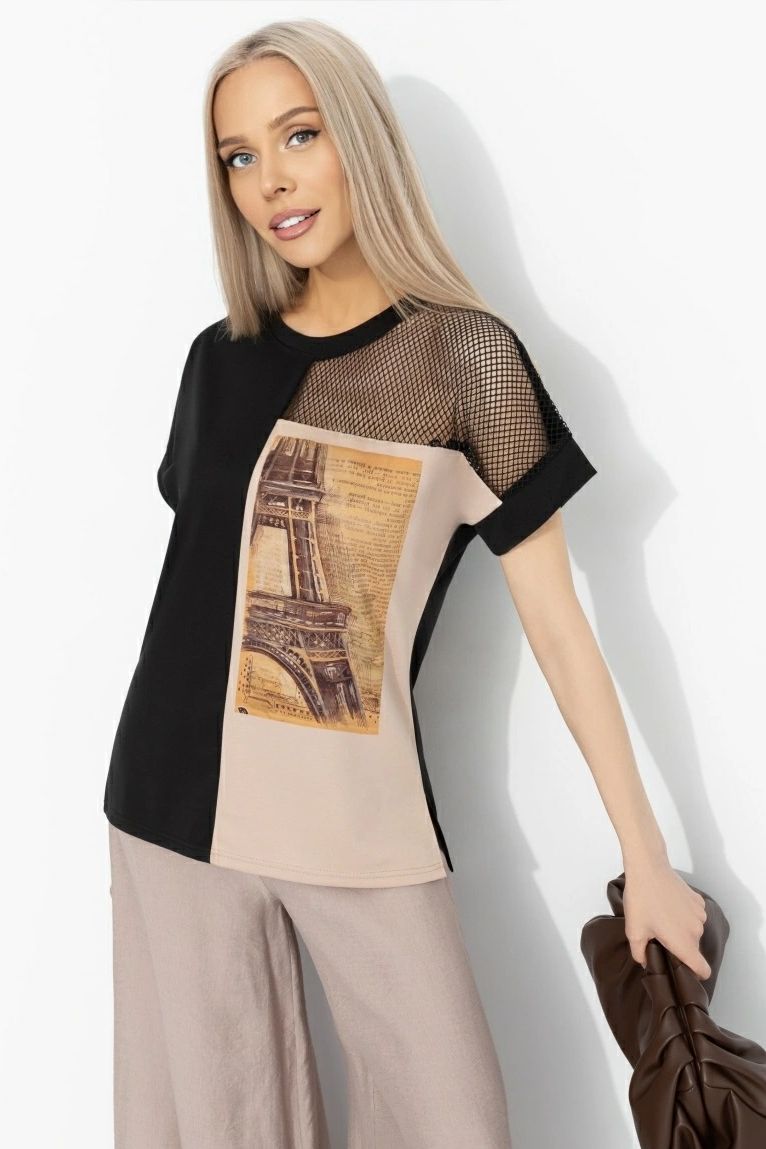 Футболка трикотажная чёрного цвета с принтом