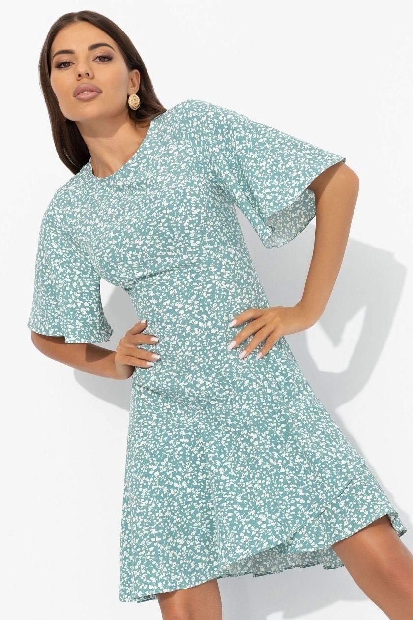 Платье с рюшами в ментолом оттенке