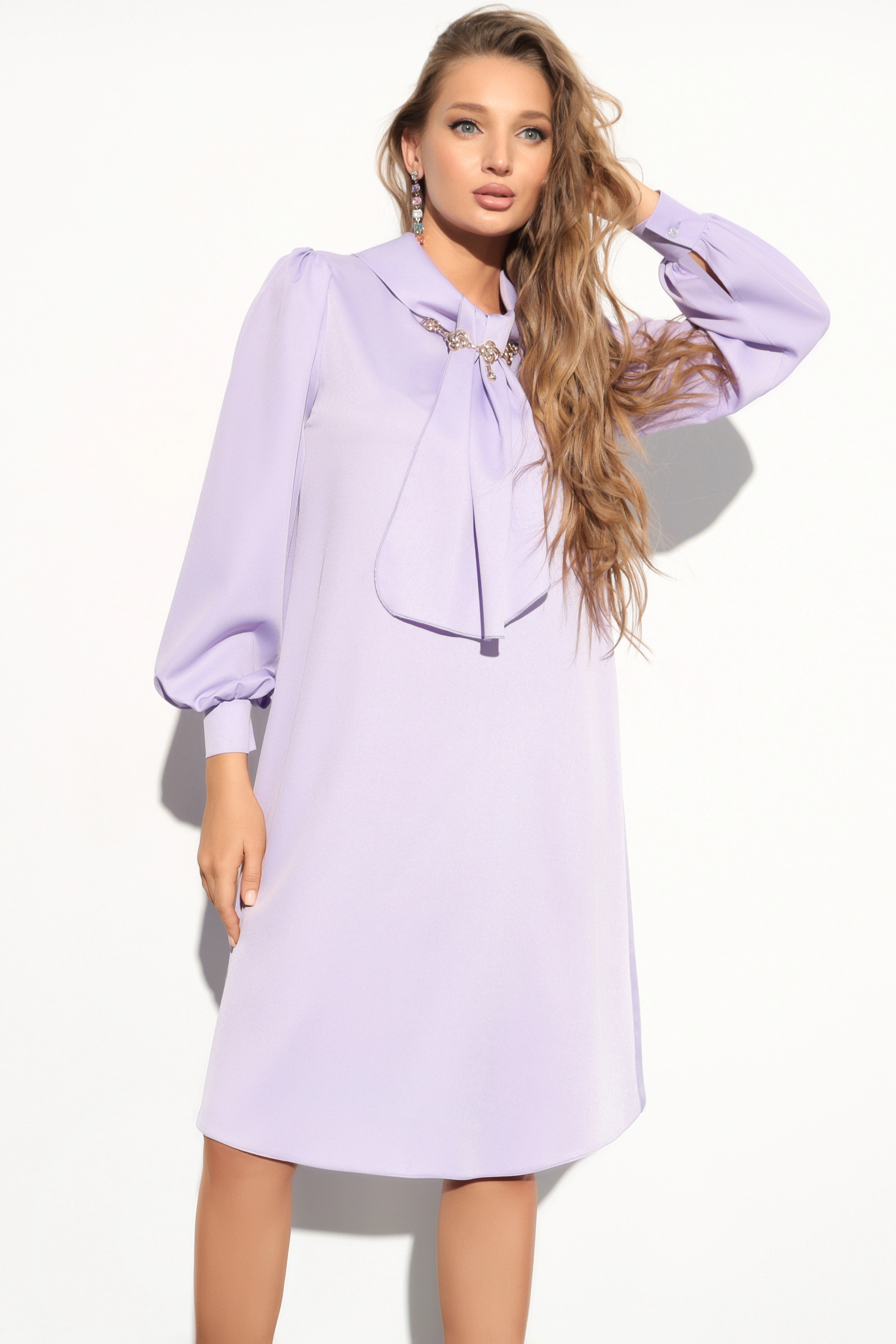 Сиреневое платье с бантом