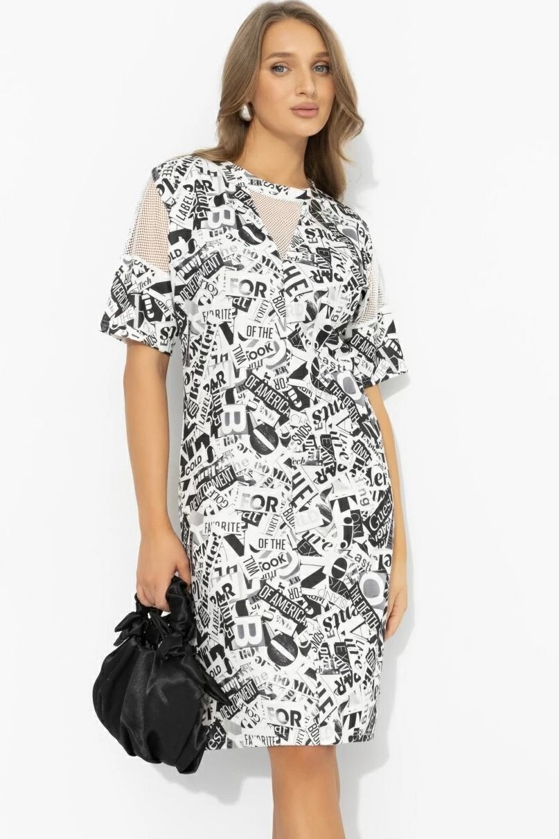 Платье комбинированное из трикотажа от компании Charutti. Модель прямого кроя, круглый вырез горловины. Короткие рукава. Платье дополнено вставками из сетки. Без застёжки. Это Ваш отличный образ, в котором вы всегда чувствуете себя уверенно.