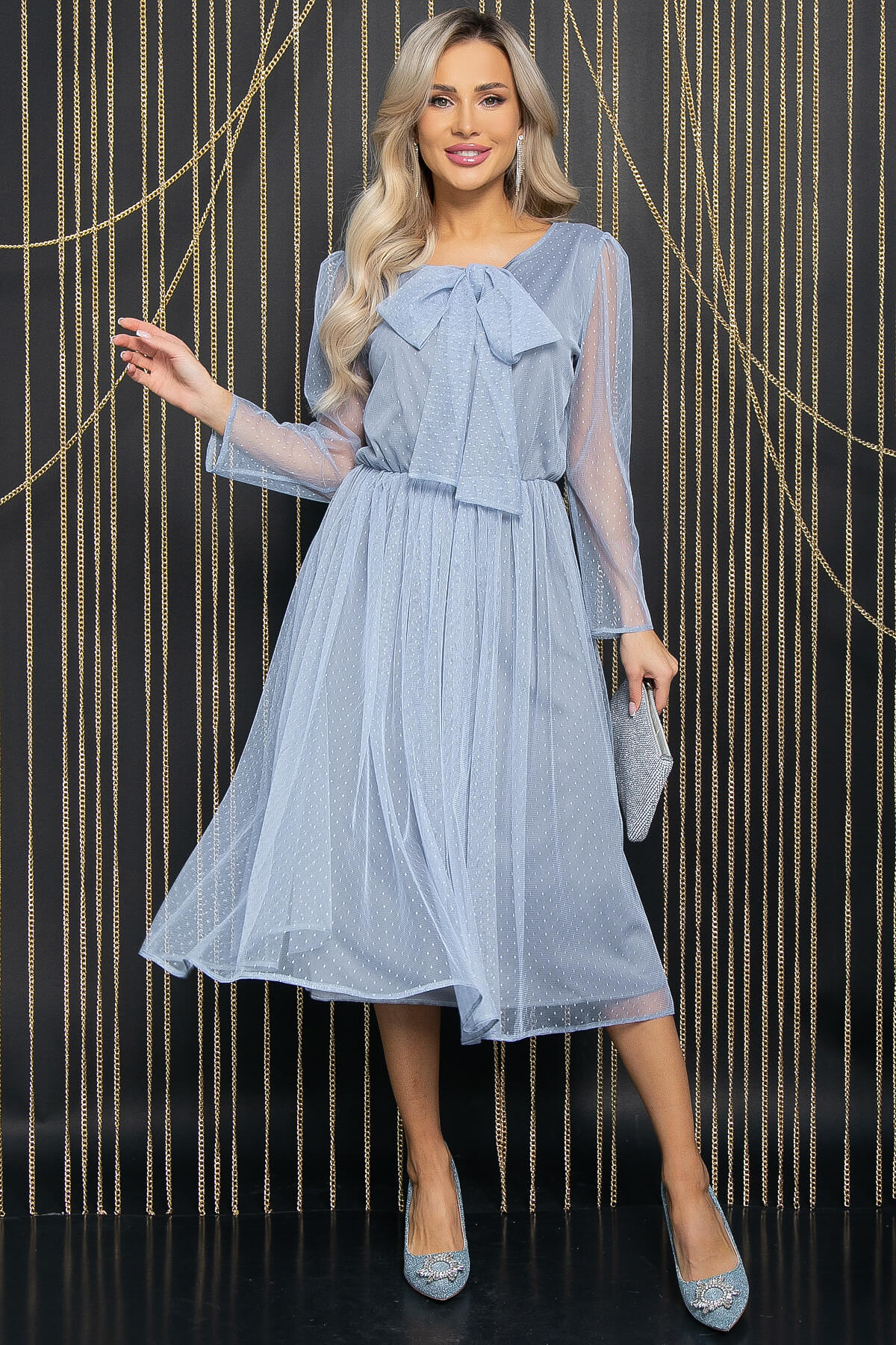 Платье нарядное голубое из сетки на подкладе из трикотажа от компании Taiga. Модель полуприлегающего кроя, рукав втачной длинный. Горловина оформлена круглым вырезом с бантом. Талия на резинке. Эта модель идеально впишется в атмосферу любого события. Будь то встреча с подружками, свидание с любимым или корпоратив. Рекомендована ручная стирка при 30 С. Допуск отклонения длины при массовом производстве 1-3 см является нормой.