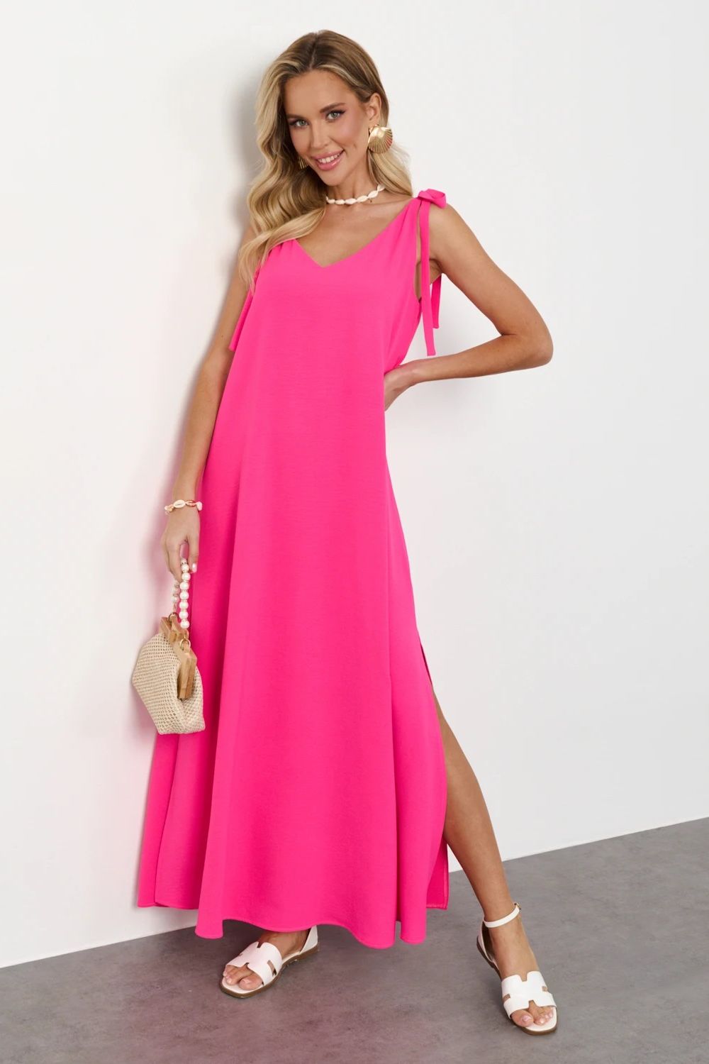 Сарафан длинный розового цвета с разрезами