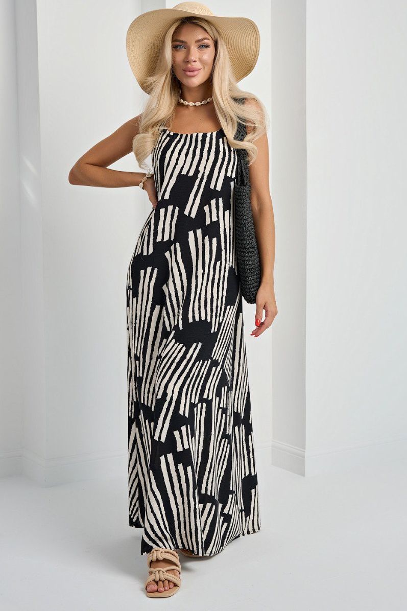 Сарафан макси чёрно-белый на бретелях от компании Jetty. Модель прямого силуэта, выполнена из лёгкой плательного струящейся ткани. Бретели из репсовой ленты. Привлекательный вариант для жаркого лета.