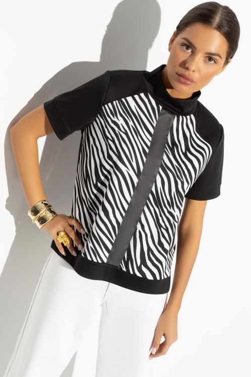 Водолазка комбинированная чёрная с принтом