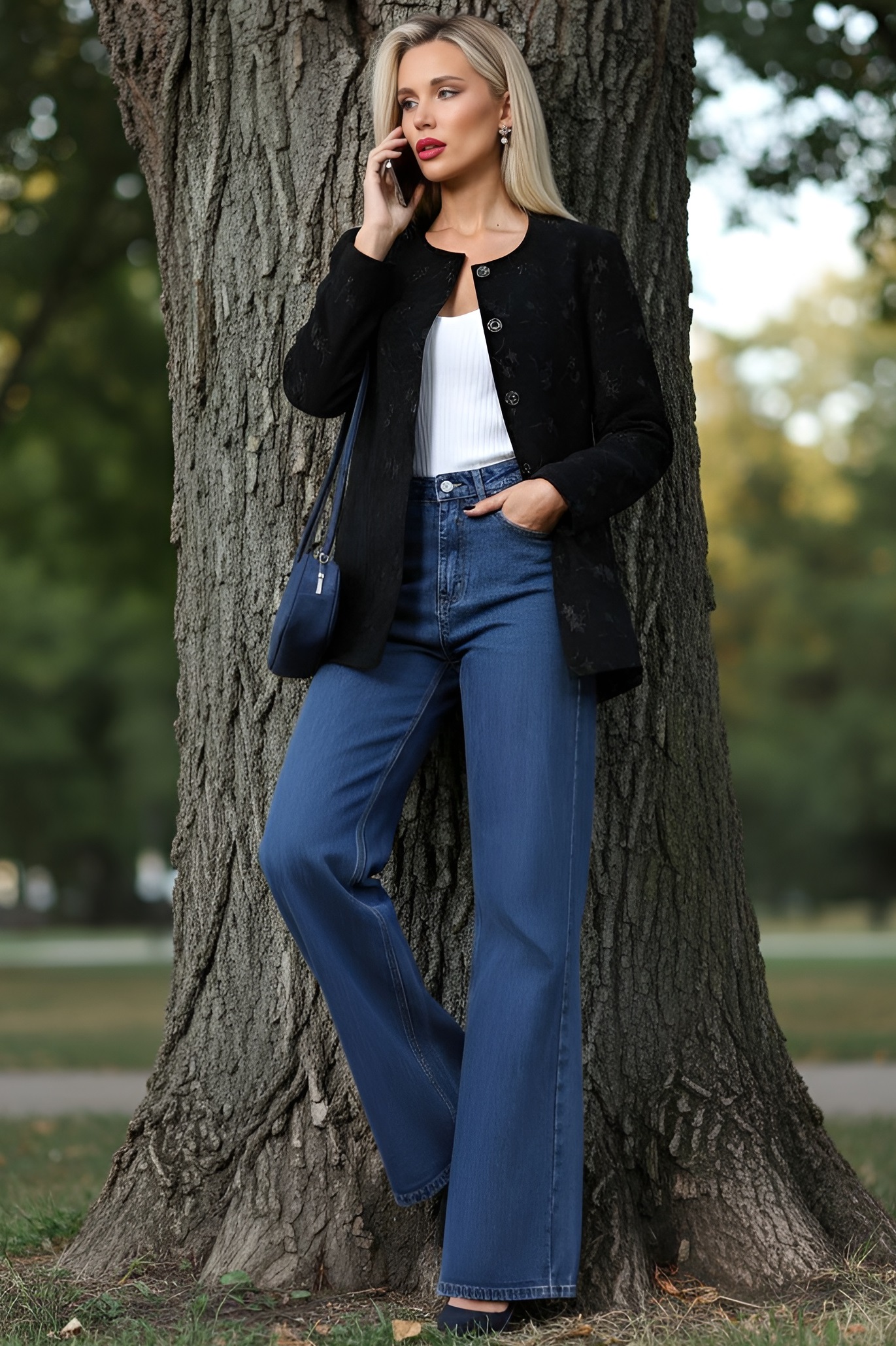 Жакет из костюмного плотного вельвета с цветочным принтом в чёрном цвете Идеальный баланс, шик